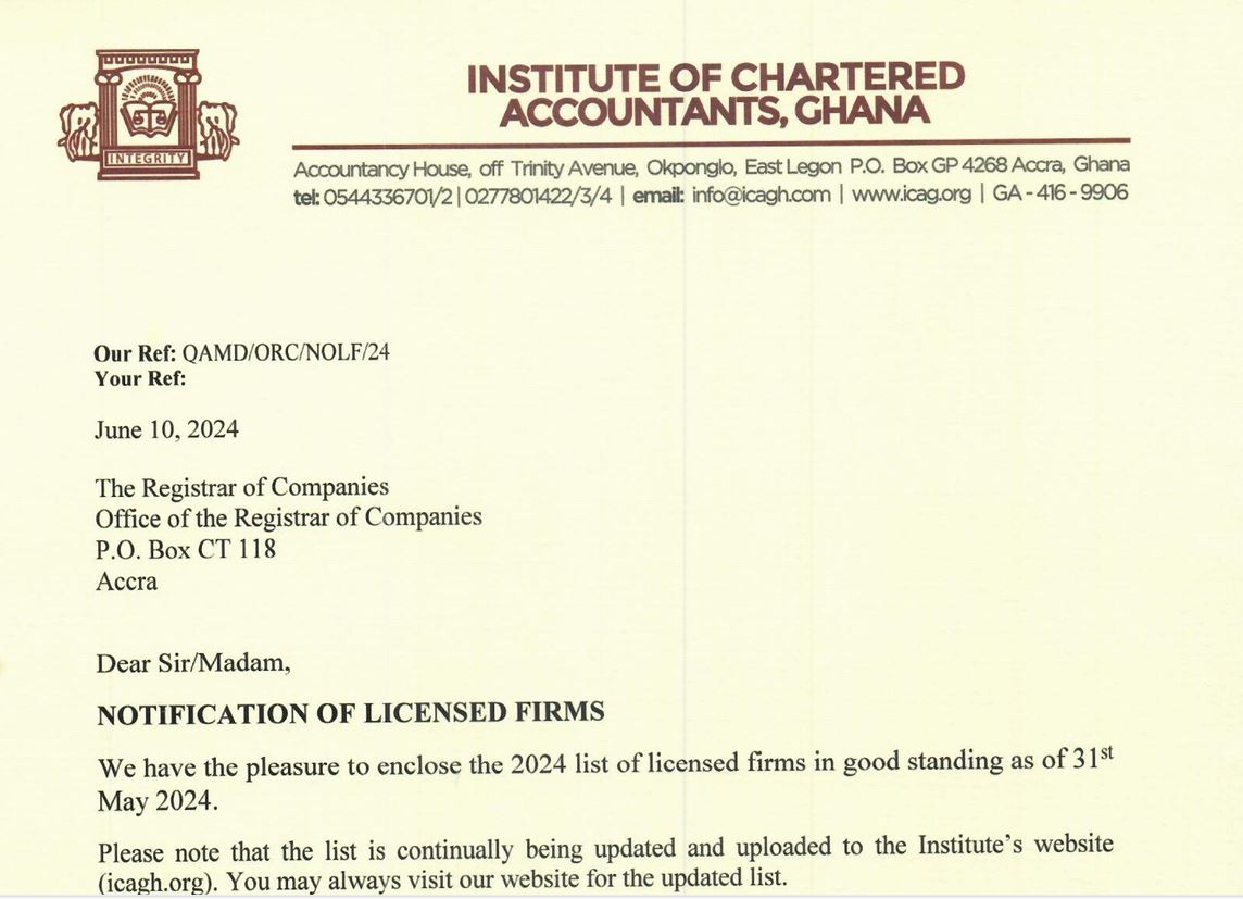 Please do not hesitate to lodge a complaint with ICAG should any financial statements or report signed by a firm that is not on the list of licensed firms in good standing or the updated list from ICAG's website come to your notice.